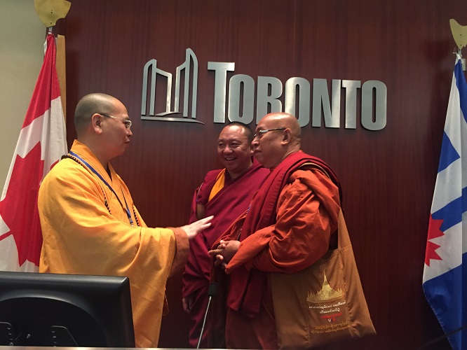 特別是倡議和發起了「首屆中、加、美三國佛教論壇」開創了三國佛教高僧大德在多倫多大學和市政廳舉行佛法論壇的先河,是實質性的將漢傳佛教國際化的踐行者。