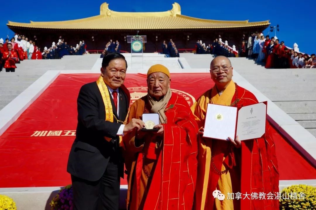 其慈悲濟世精神,獲得加拿大聯邦、安大略省、多倫多市三級政府的高度評價,被譽爲加國佛教的領航者。加拿大佛教會湛山精舍因此而獲得加拿大總理和國會聯邦參議院的表彰與勳章。
