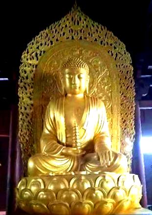 Bhaiṣajyaguru (“Medicine Master and King of Lapis Lazuli Light”); is the Buddha of healing and medicine in Mahāyāna Buddhism. Commonly referred to as the “Medicine Buddha”, he is described as a doctor who cures our sufferings and liberates us from the cycle of rebirth by prescribing us to his medicine of teachings. The image of Bhaiṣajyaguru is usually expressed with a canonical Buddha-like form holding a pagoda and, in some versions, possessing blue skin. The pagoda embodies the important characteristics and merits of the Medicine Buddha that can eliminate disasters, remove obstacles, cure diseases, prolong life, and receive blessings. As a bodhisattva who made Twelve Great Vows, upon achieving Buddhahood, he became the Buddha of the Eastern Pure Land of Vaiḍūryanirbhāsa “Pure Lapis Lazuli”. There, he is attended to by two bodhisattvas symbolizing the light of the sun and the light of the moon respectively.